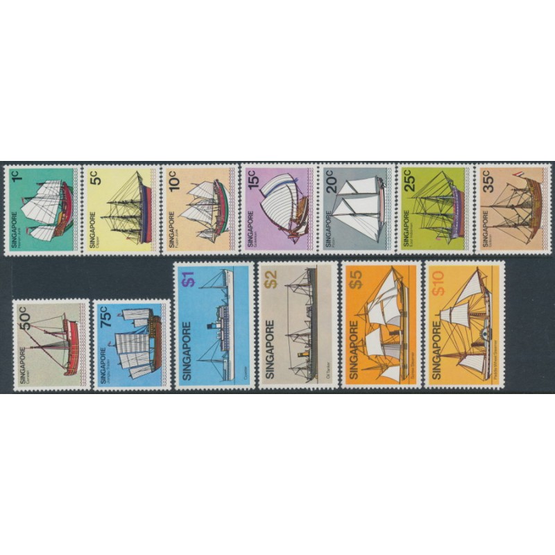 SINGAPORE - 1980 1c to $10 Ships & Boats set of 13, MNH – SG # 364-376