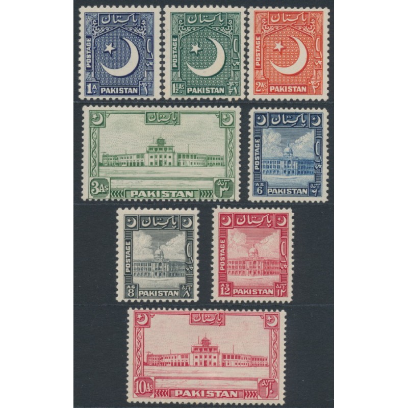 PAKISTAN 1949 1a to 12a Definitives set of 8, crescent moon faces left, mint hinged – no thins, tears or bends. SG Cat. # 44-51