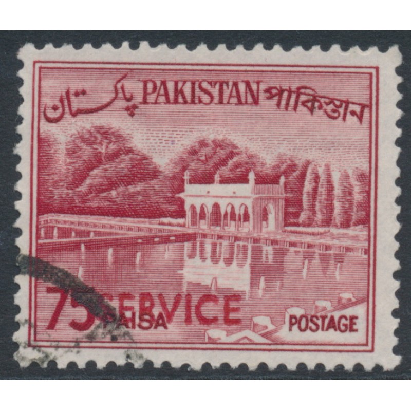 PAKISTAN 1963 75p carmine-red Shalimar Gardens, Lahore, overprinted in red SERVICE (SG type = O5), used – no thins, tears or bends. SG Cat. # O103