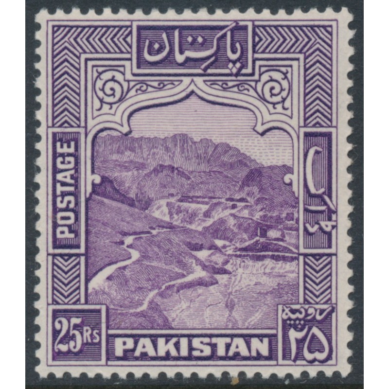 PAKISTAN 1948 25Rp violet Khyber Pass, perf. 14:14, no watermark, mint hinged – no thins, tears or bends. SG Cat. # 43