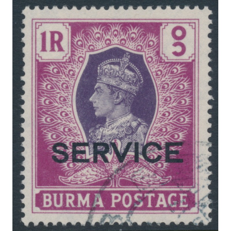 BURMA 1946 1Rp violet/maroon King George VI definitive, overprinted SERVICE, used – no thins, tears or bends. SG Cat. # O37
