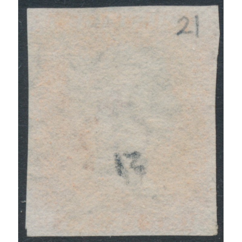 1841 1d red-brown Queen Victoria, imperforate, plate 21, check letters JH, used – no thins, tears or bends.