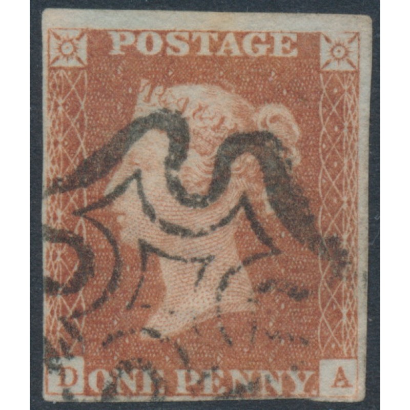 1841 1d red-brown Queen Victoria, imperforate, plate 13, check letters DA, used – no thins, tears or bends.