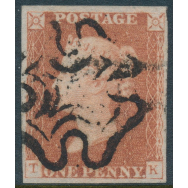 1842 1d red-brown Queen Victoria, imperforate, plate 25, check letters TK, used – no thins, tears or bends.