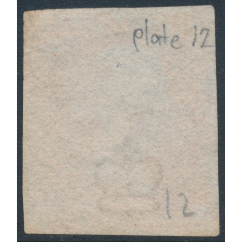 1841 1d red-brown Queen Victoria, imperforate, plate 12, check letters LC, used – no thins, tears or bends.