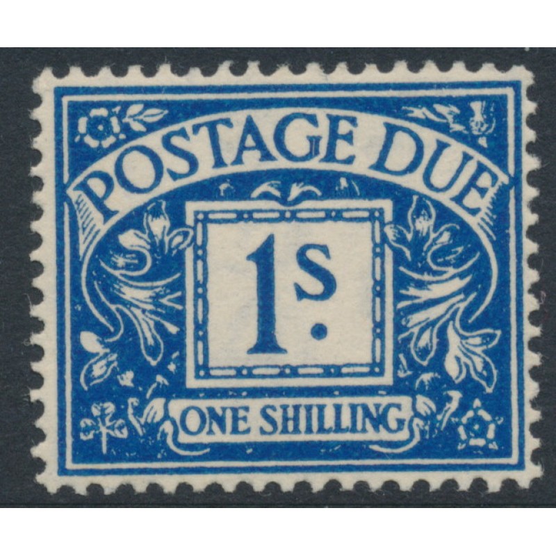 1937 1/- deep blue Postage Due, GVIR watermark (SG type = W127), mint hinged – no thins, tears or bends.