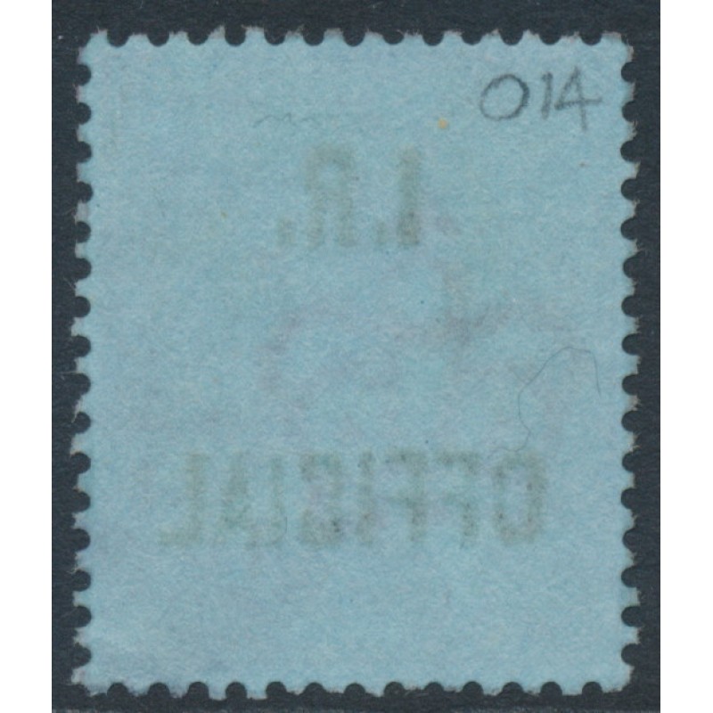 1892 2½d purple on blue Queen Victoria Jubilee, overprinted I.R. OFFICIAL, used – no thins, tears or bends.