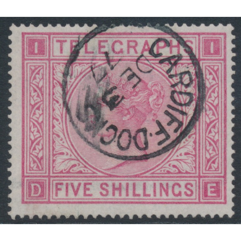 GREAT BRITAIN - 1876 5/- rose QV Telegraph stamp, used – SG # T13