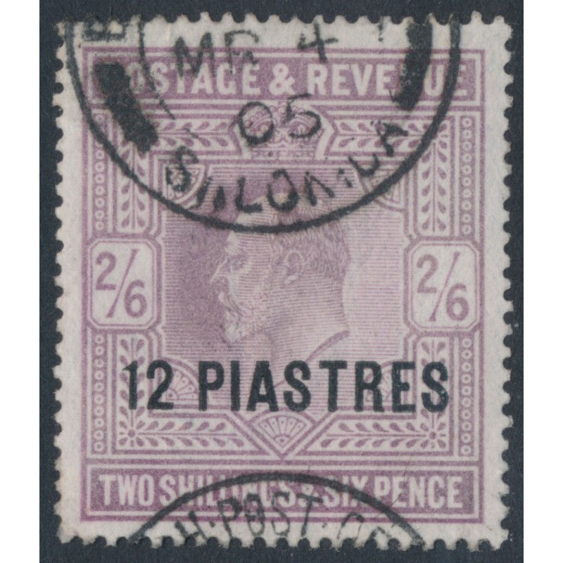 1903 12 PIASTRES on 2/6 lilac King Edward VII (ordinary paper), for use by the British Post Office in Turkey (Levant), used – no thins, tears or bends.