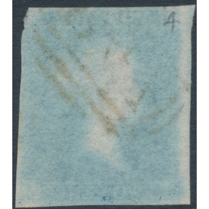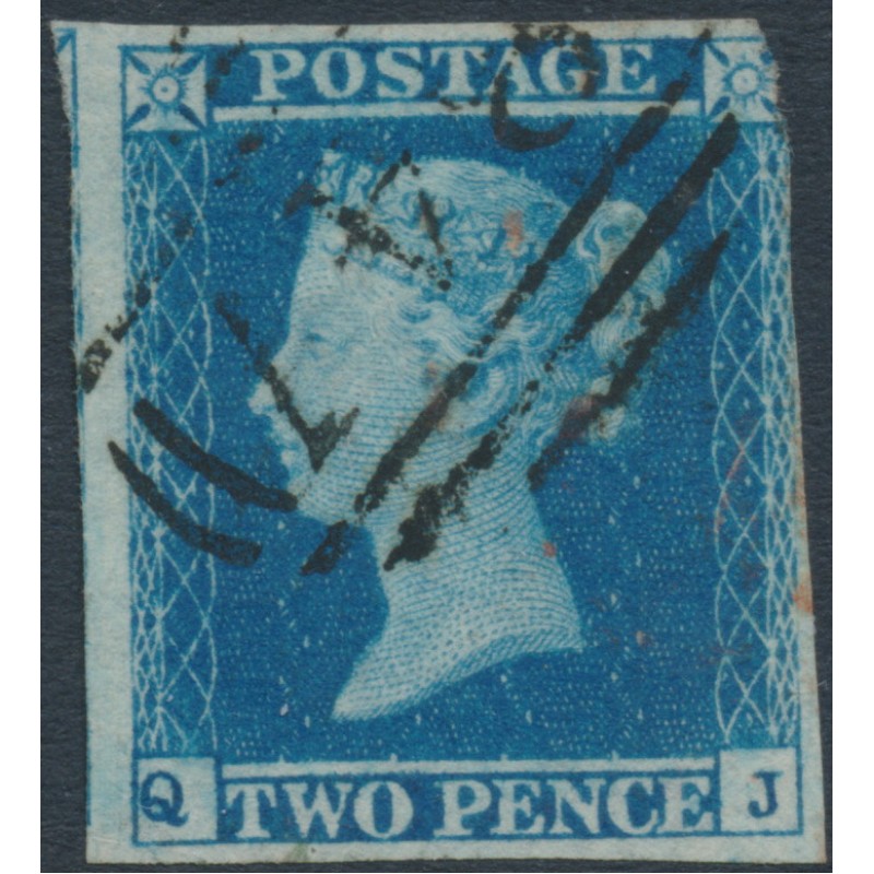 1849 2d blue Queen Victoria, imperforate, plate 4, check letters QJ, used – no thins, tears or bends.