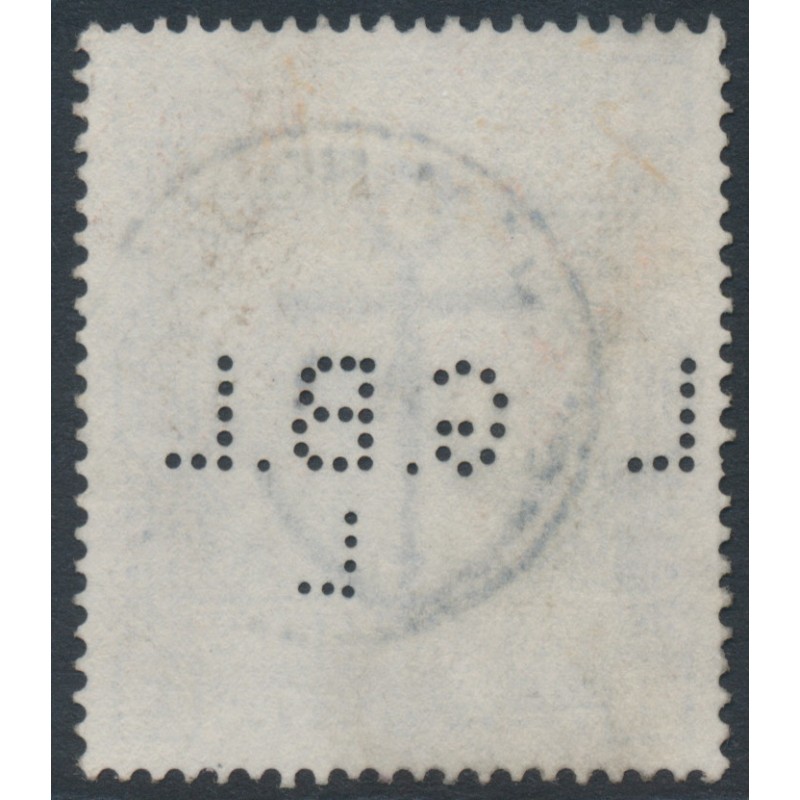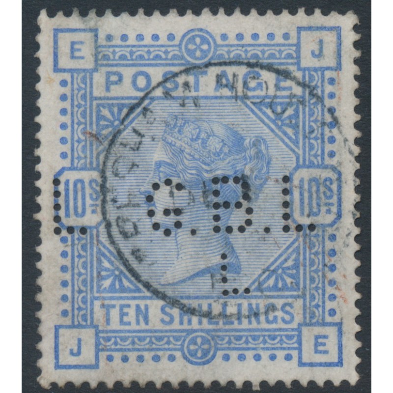 1883 10/- ultramarine Queen Victoria, Large Anchor watermark, check letters JE, has a G.B.L.L private perfin, used – no thins, tears or bends.