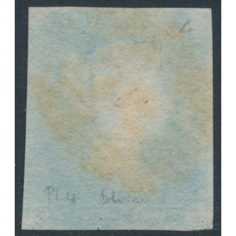 1849 2d blue Queen Victoria, imperforate, plate 4, check letters PF, used – no thins, tears or bends.