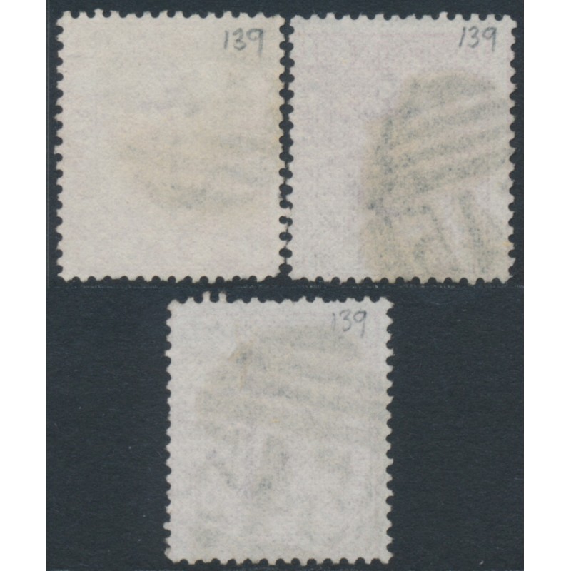 GREAT BRITAIN / UNITED KINGDOM / ENGLAND / G.B. / U.K. 1875 2½d rosy mauve Queen Victoria, Small Anchor watermark, plates 1, 2 & 3 set of three, used – no thins, tears or bends. SG Cat. # 139