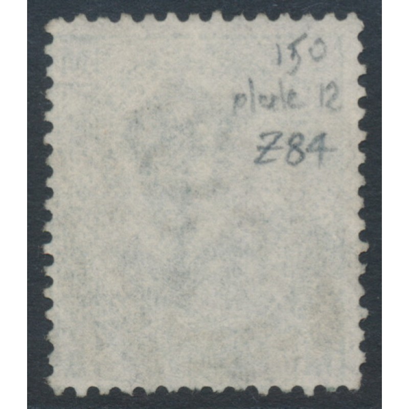 1875 1/- green Queen Victoria, Spray of Rose watermark, plate 12, check letters MB, used – has a ‘C30’ cancel (= Valparaíso, Chile), no thins, tears or bends.
