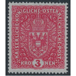 AUSTRIA / ÖSTERREICH 1917 3Kr red Coat of Arms on plain paper, picture size 25mm x 30mm, mint hinged – no thins, tears or bends. Michel Cat. # 205Ix