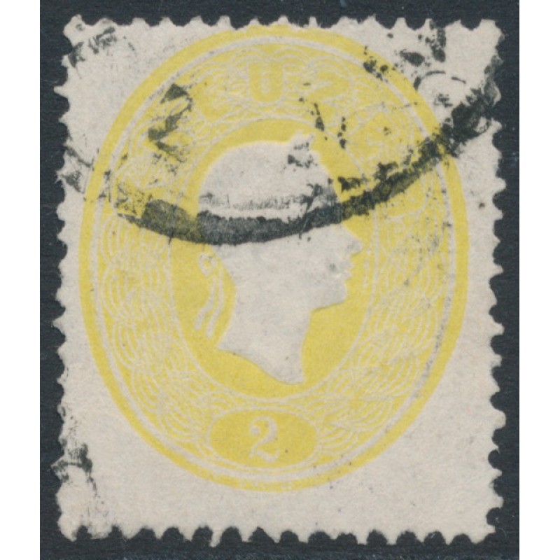AUSTRIA / ÖSTERREICH 1860 2Kr yellow Emperor Franz Joseph, perf. 14:14, used – no thins, tears or bends. Michel Cat. # 18a