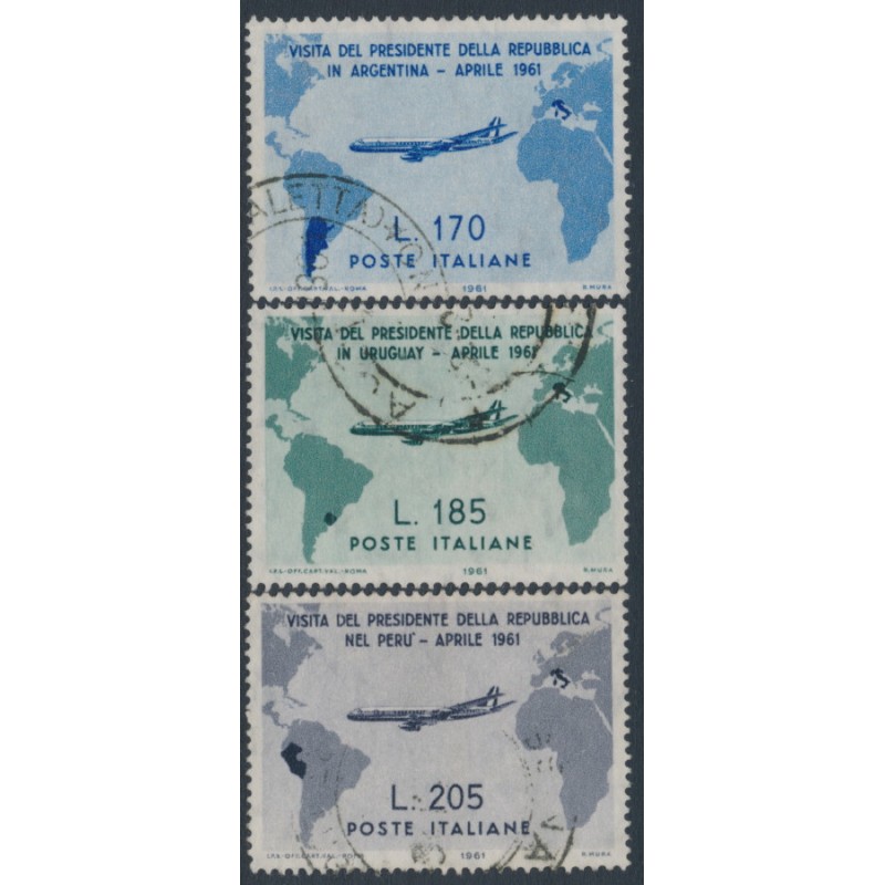 ITALY / ITALIA 1961 170L to 205L President’s visit to South America set of 3, used – no thins, tears or bends. Michel Cat. # 1100-1102