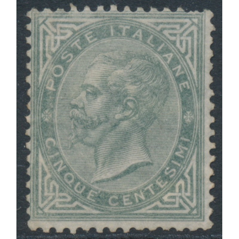 1863 5c grey-olive King Vittorio Emanuele II, unused – without gum, has a couple of short perforations and a light corner bend. Has been signed by Dr. Helmuth Avi.