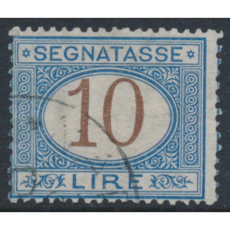 ITALY / ITALIA 1874 10L blue/brown Postage Due, used – no thins, tears or bends. Michel Cat. # P14