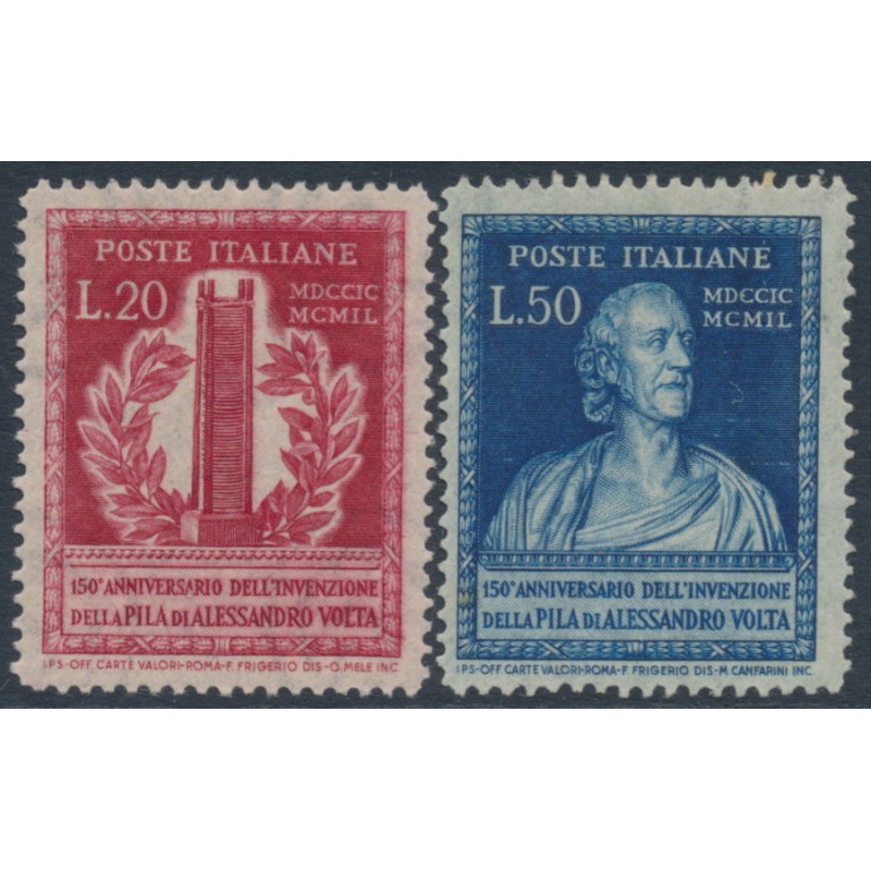 ITALY / ITALIA 1949 20L carmine & 50L deep blue Alexander Volta set of 2, mint never hinged – no thins, tears or bends. Michel Cat. # 784-785 SG Cat. # 737-738