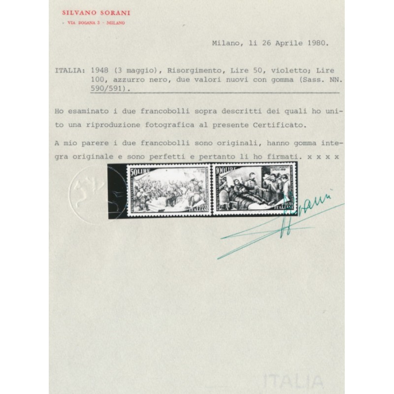 1948 3L to 100L Anniversary of the 1848 Uprising set of 13, mint never hinged – no thins, tears or bends. Has a Sorani photo-certificate for the 50L & 100L values.