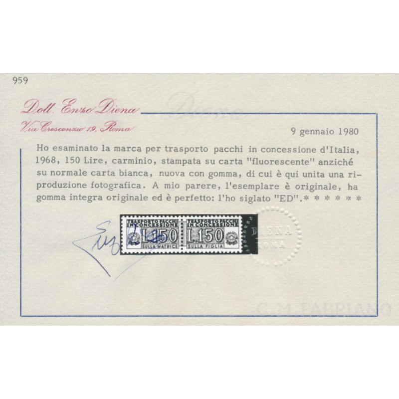 1955-1981 40L to 900L Concessional Parcel Stamps set of 18 pairs with stars watermark, includes the 150L value on fluorescent paper (with Diena certificate), mint never hinged – no thins, tears or bends.