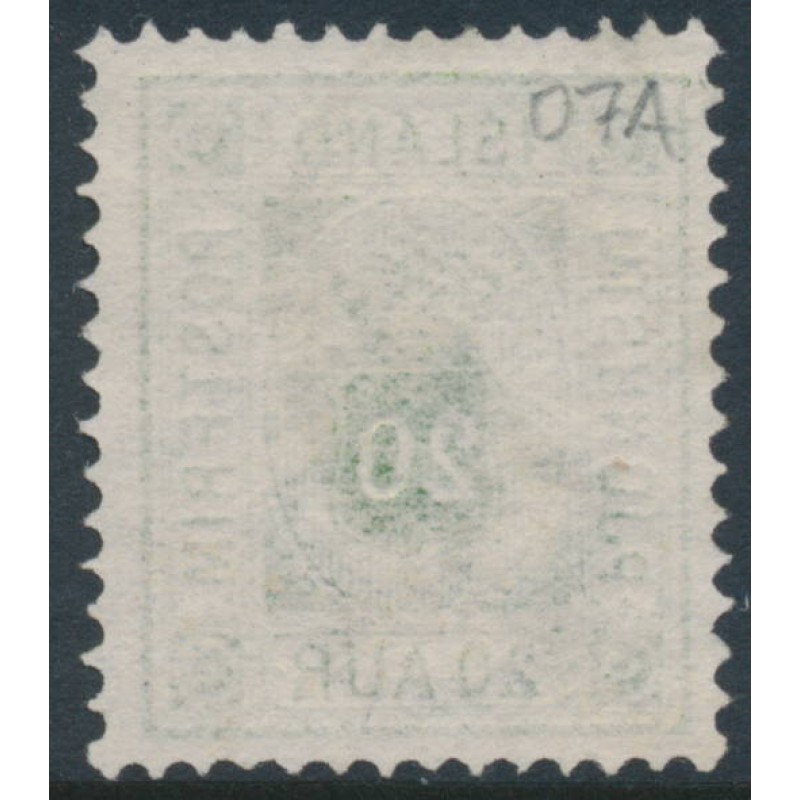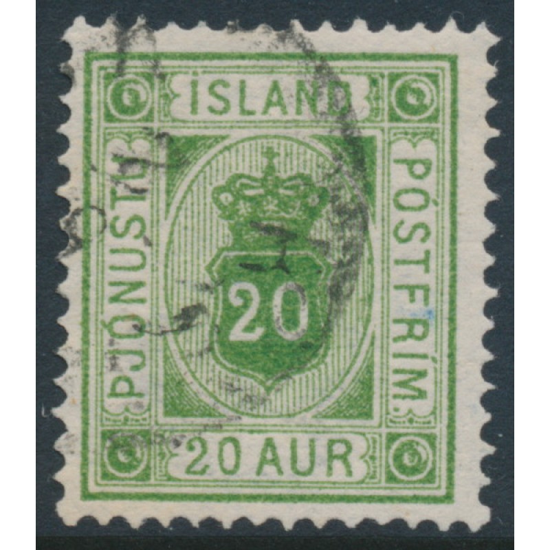 ICELAND / ÍSLAND 1876 20a green Numeral, perf. 14:13½, ÞJÓNUSTU (Official), used – no thins, tears or bends. Michel Cat. # D7A Facit Cat. # TJ8b