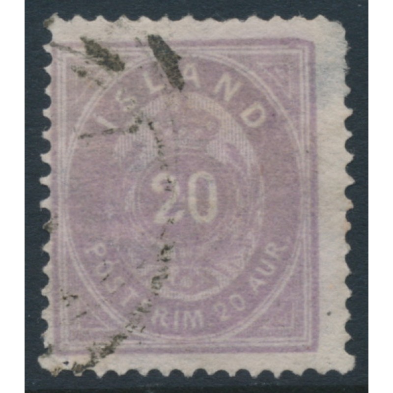 ICELAND / ÍSLAND 1876 20a violet Numeral, perf. 14:13½, used – has a damaged corner. Michel Cat. # 10Aa Facit Cat. # 14a