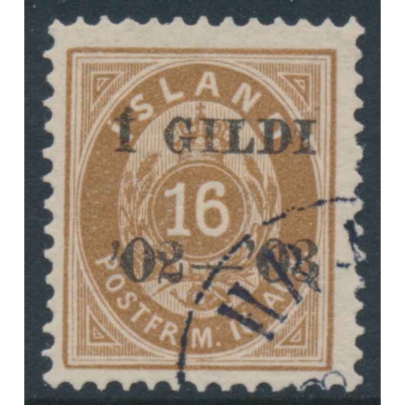 ICELAND - 1902 16a brown Numeral, perf. 12¾, overprinted Í GILDI ’02-‘03, used – Facit # 54