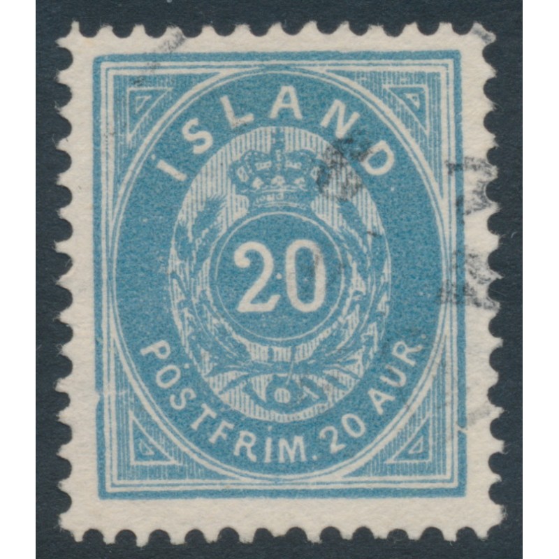 ICELAND - 1896 20a blue Numeral, perf. 12¾, used – Facit # 28b