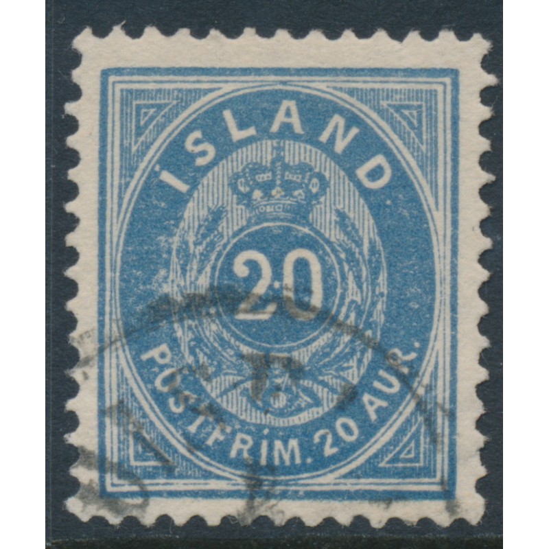 ICELAND / ÍSLAND 1896 20a dull ultramarine Numeral, perf. 12¾, used – no thins, tears or bends. Michel Cat. # 14Bb Facit Cat. # 28a