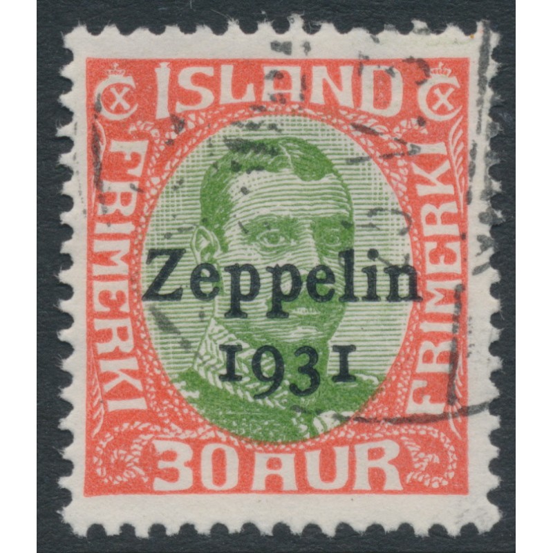 ICELAND - 1931 30a red/green King Christian X, o/p Zeppelin 1931, used – Facit # 162