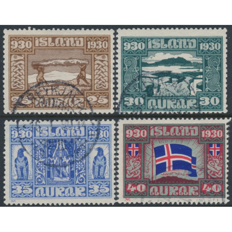 ICELAND / ÍSLAND 1930 25aur to 40aur 1000th Anniversary of the Althing (Alþingi), used – no thins, tears or bends. Facit Cat. # 179-182 Michel Cat. # 131-134