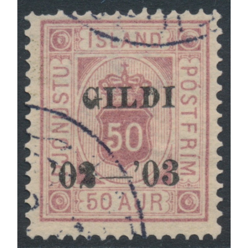 1902 50a red-lilac Numeral, perf. 14:13½, ÞJÓNUSTU (Official), overprinted Í GILDI ’02-‘03, with the variety ‘missing Í in overprint, used – no thins, tears or bends.