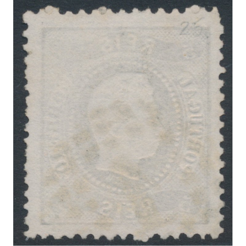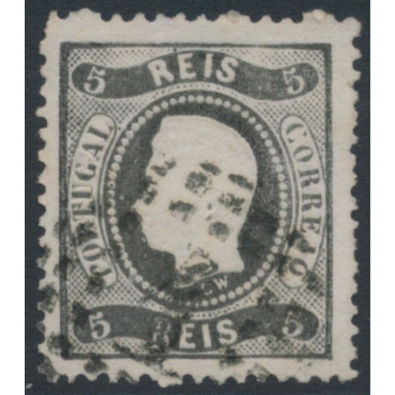 PORTUGAL 1867 5R black King Luis I, curved value ribbon, perf. 12½:12½, used – no thins, tears or bends. Michel Cat. # 25