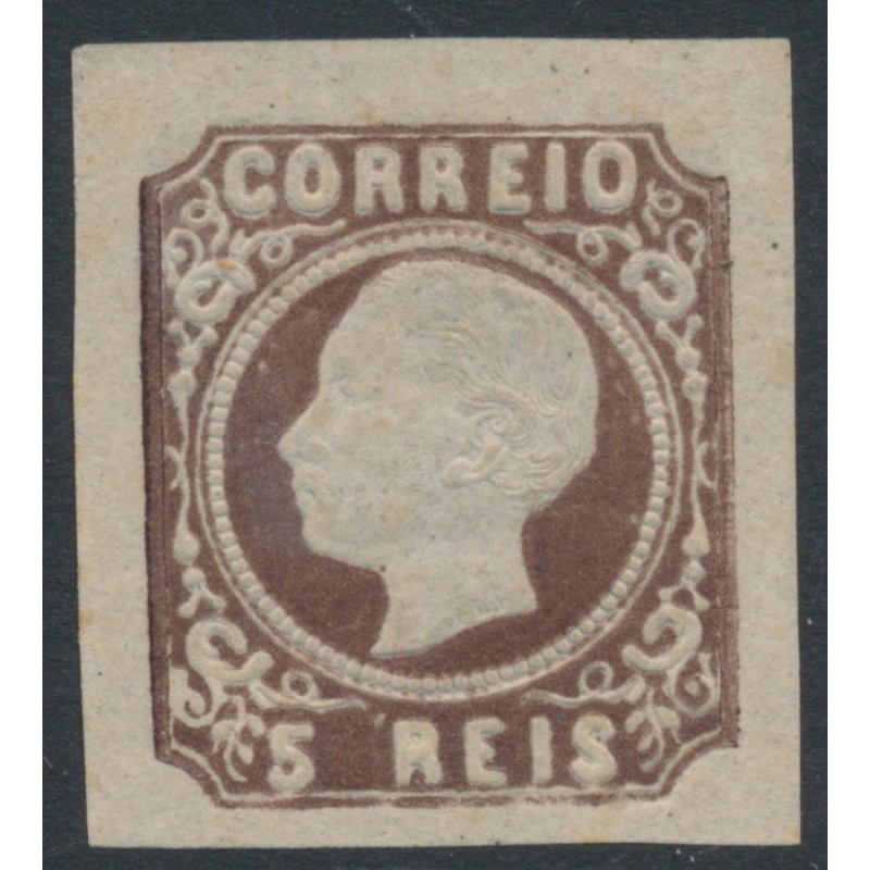 PORTUGAL 1862 5R deep brown King Luis I, “5 REIS” widely spaced, imperforate, mint hinged – no thins, tears or bends. Michel Cat. # 12I