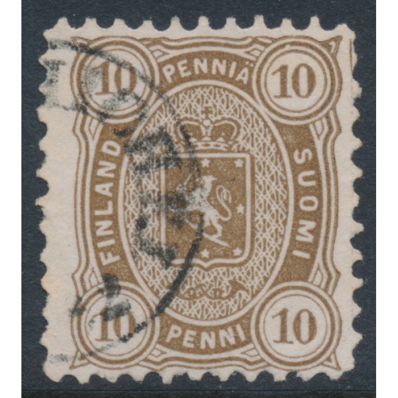 FINLAND / SUOMI 1881 10Pen olive-brown Coat of Arms, perf. 11:11, used – no thins, tears or bends. Facit Cat. # 15SC¹a Michel Cat. # 15Ay
