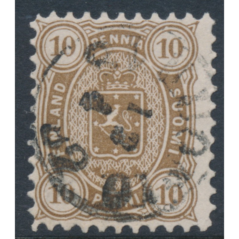 FINLAND / SUOMI 1881 10Pen olive-brown Coat of Arms, perf. 11:11, used – no thins, tears or bends. Facit Cat. # 15SC¹a Michel Cat. # 15Ay