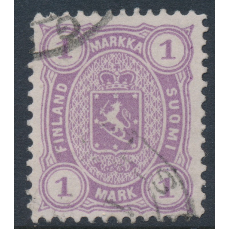 FINLAND - 1882 1Mk reddish violet Coat of Arms, perf. 12½:12½, used – Facit # 19LC²a