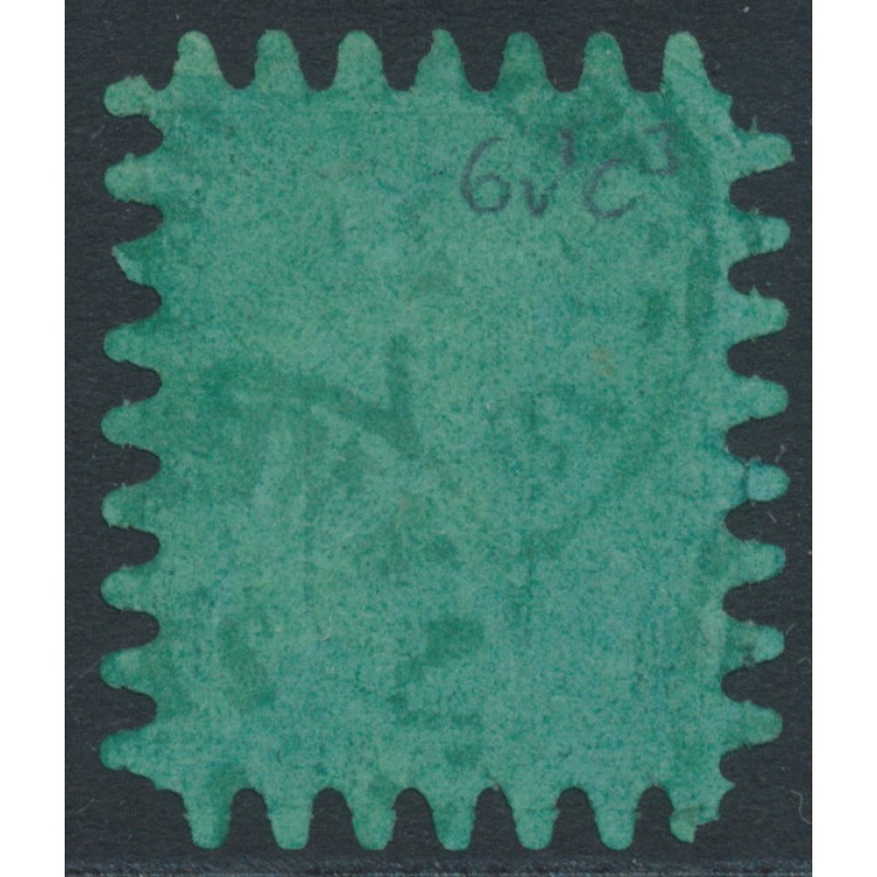 1867 8Pen black Coat of Arms, roulette III [long-length teeth], on green ordinary paper, used – no thins, tears or bends.