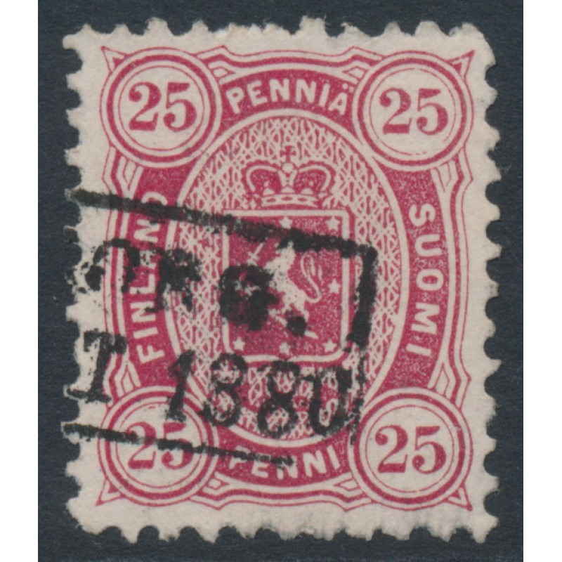 FINLAND / SUOMI 1880 25Pen dark carmine Coat of Arms, perf. 11:11, used – no thins, tears or bends. Facit Cat. # 17SC¹c Michel Cat. # 17Aya