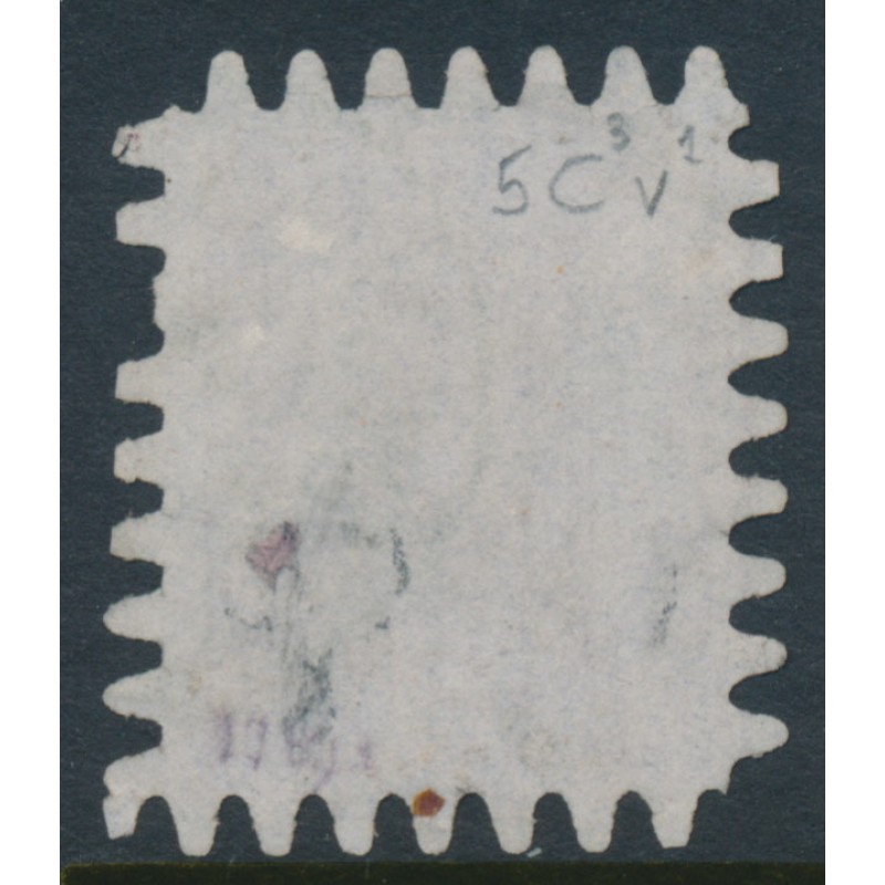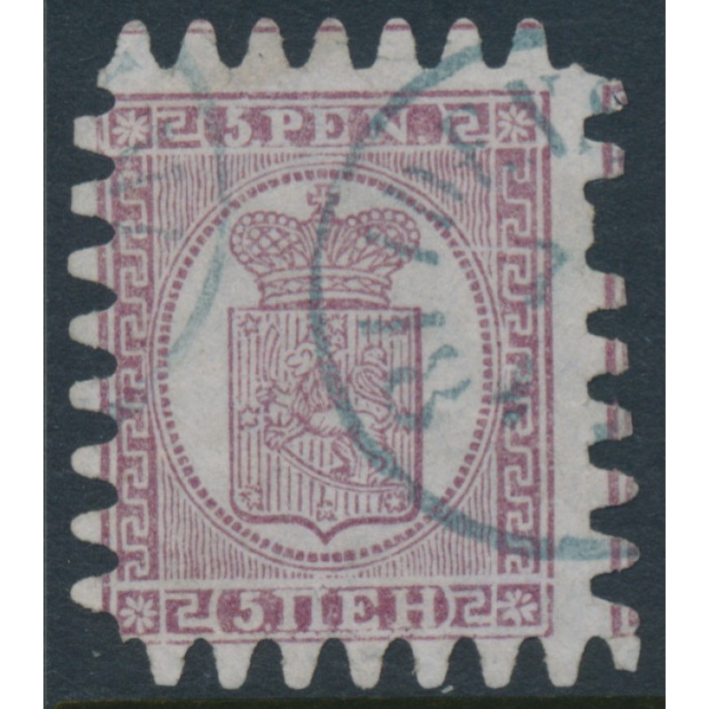 FINLAND - 1870 5Pen lilac-brown Coat of Arms, roulette III, ribbed paper, used – Facit # 5v1C3