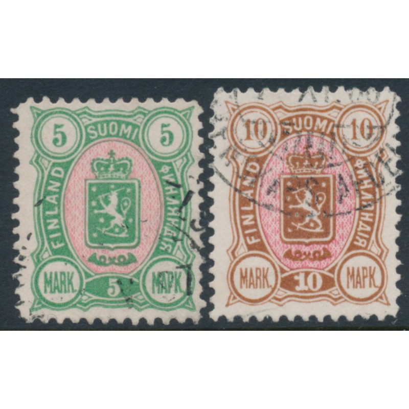 FINLAND - 1890 5Mk green/red & 10Mk brown/red Arms, used – Facit # 33-34