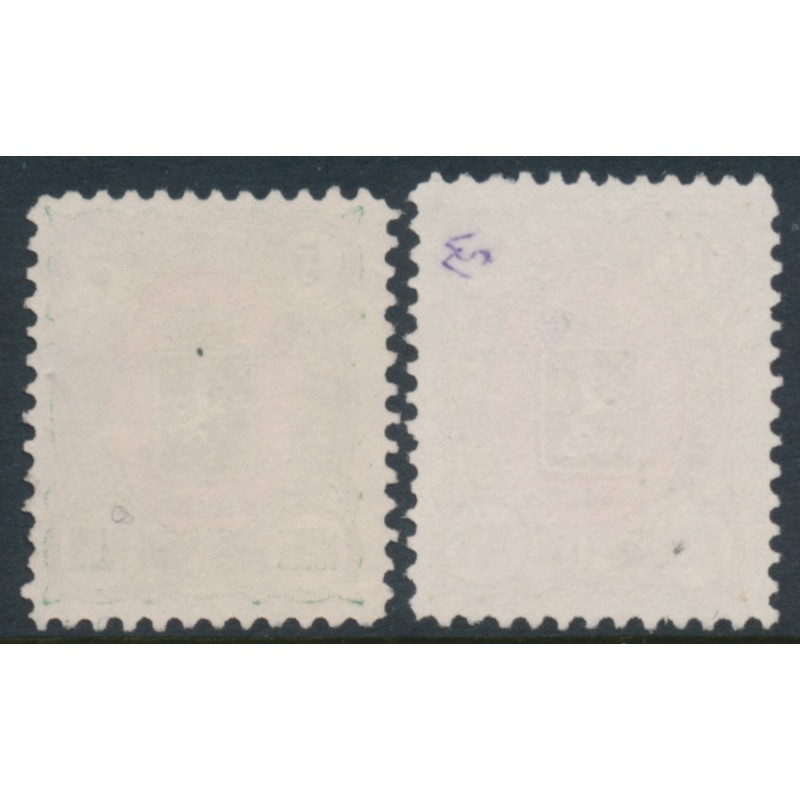 1890 5Mk green/red & 10Mk brown/red Coat of Arms, used – no thins, tears or bends.
