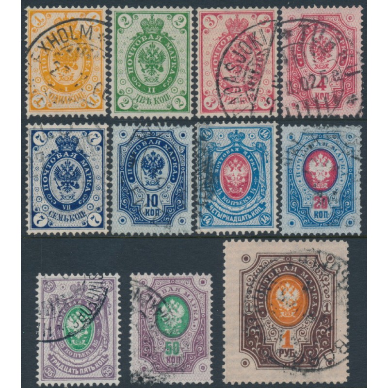 FINLAND - 1891 1K to 1R Russian Arms with circles, used – Facit # 35-45