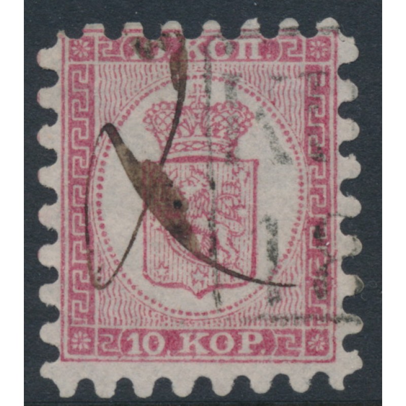FINLAND - 1864 10Kop carmine-rose Coat of Arms, roulette I, medium-spaced stamps, used – Facit # 4C1LK