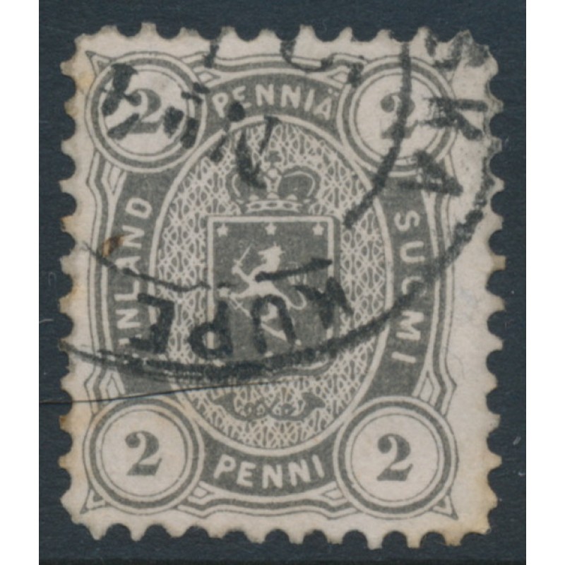 FINLAND / SUOMI 1875 2Pen black-grey Coat of Arms, perf. 11:11, used – no thins, tears or bends. Facit Cat. # 12Se Michel Cat. # 12Ayb