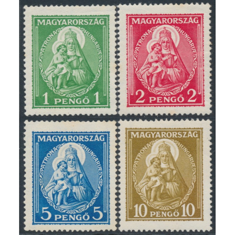 1932 1P to 10P Patrona Hungariæ (Madonna & Child) set of 4, mint never hinged – no thins, tears or bends.