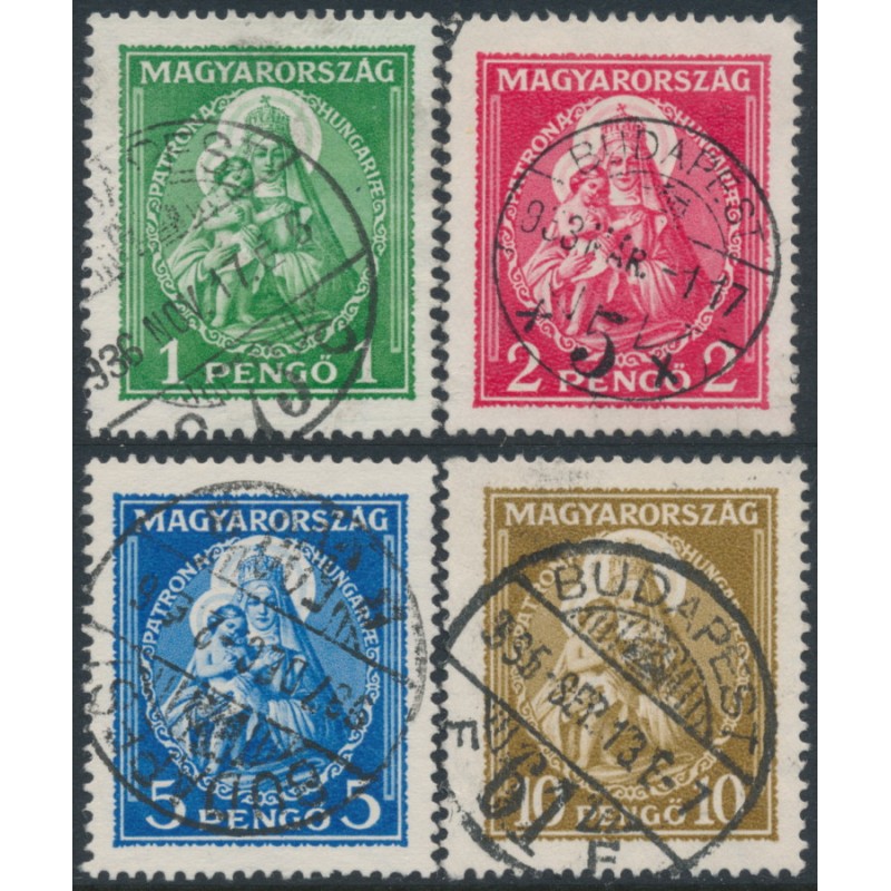 HUNGARY / MAGYARORSZÁG / MAGYAR KÖZTÁRSASÁG 1932 1P to 10P Patrona Hungariæ (Madonna & Child) set of 4, used – no thins, tears or bends. Michel Cat. # 484-487