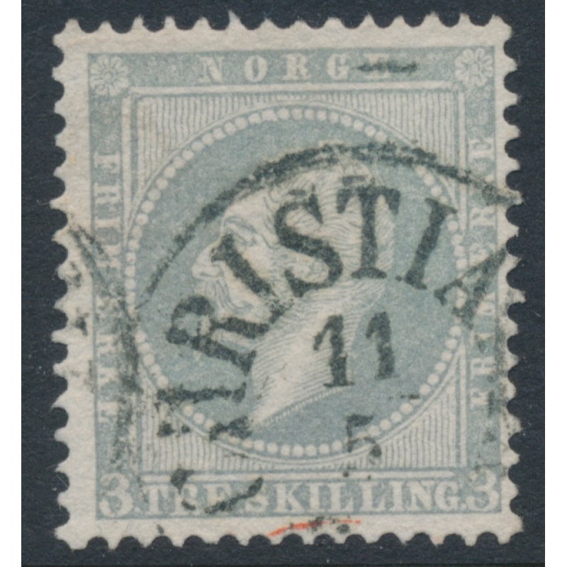 NORWAY / NORGE / NOREG 1857 3Sk grey King Oscar I, used – no thins, tears or bends. Facit Cat. # 3b Michel Cat. # 3